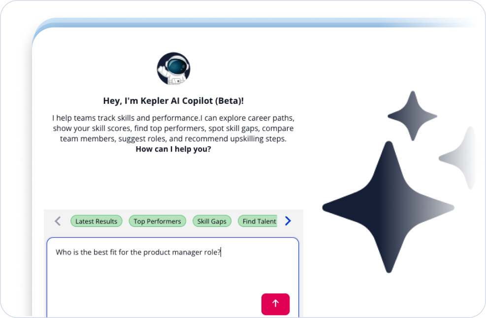 Ask Kepler AI anything. From who’s best for a role to where your biggest gaps are.